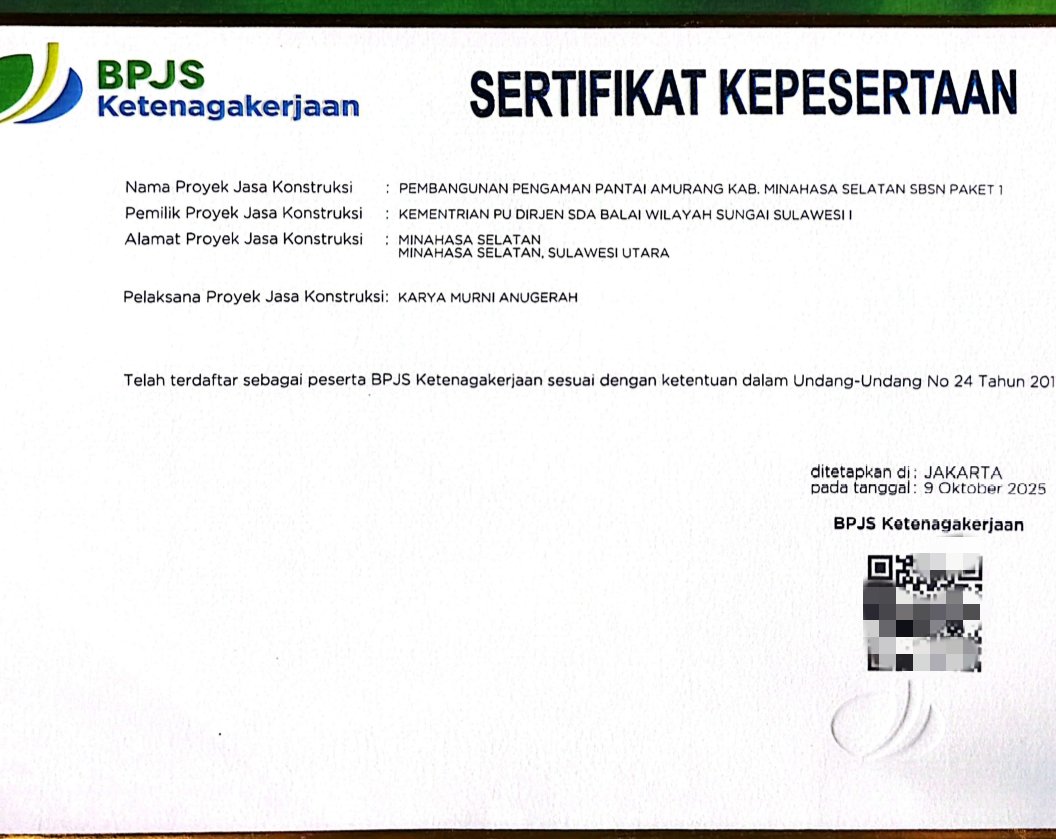 Aspek Keselamatan dan Kesehatan Kerja (K3) menjadi perhatian serius dalam pelaksanaan proyek Balai Sungai Sulawesi Utara ini. Weken memastikan seluruh pekerja di lapangan mematuhi Standar Operasional Prosedur (SOP) K3 yang ketat.