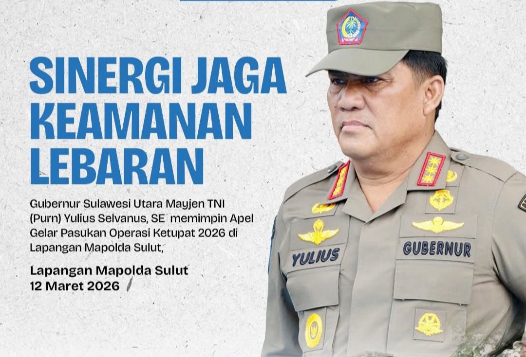 MANADO – Semangat kerukunan antarumat beragama di Sulawesi Utara kembali menjadi sorotan utama. Menjelang hari raya besar keagamaan, Gubernur Sulawesi Utara, Mayjen TNI (Purn) Yulius Selvanus, SE, memimpin langsung Apel Gelar Pasukan Operasi Ketupat 2026 di Markas Komando (Mako) Polda Sulut, Kamis (12/3/2026).