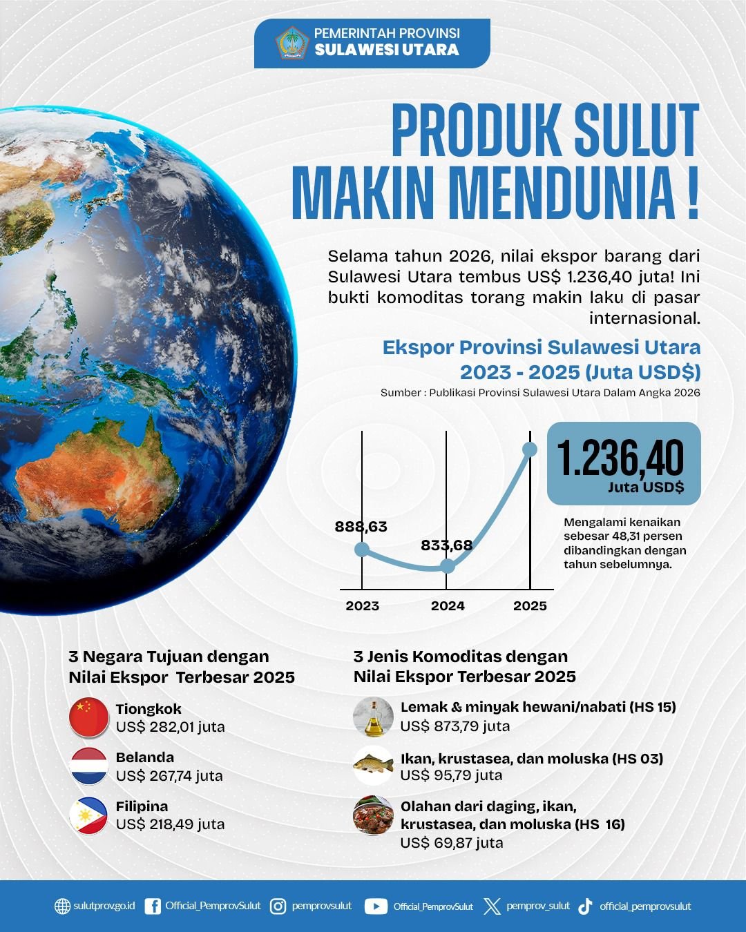 Sepanjang 2025, nilai ekspor Sulut mencatatkan rekor fantastis, menembus US$ 1.236,40 juta. Angka ini melonjak tajam hingga 48,31% dibandingkan tahun sebelumnya. Siapa sangka, tiga primadona ekspor Sulut kini menjadi incaran utama dunia: